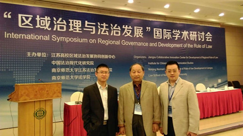4月23至24日,江苏高校区域法治发展协同创新中心、中国法治现代化研究院、南京师范大学江苏法治发展研究院和南京师范大学法学院联合举办的“区域治理与法治发展”国际学术研讨会在南京成功召开。出席本次会议的有中国法学会、西南政法大学、复旦大学、浙江大学、上海交通大学、武汉大学、厦门大学、华东政法大学及港澳台等方面的专家学者三十余人。还有来自美国、英国、德国、澳大利亚、俄罗斯、日本等国的数十位专家学者。我校行政法学院、地方立法研究协同创新中心顾问文正邦教授、研究员胡兴建副教授、张善根副教授应邀出席了会议。