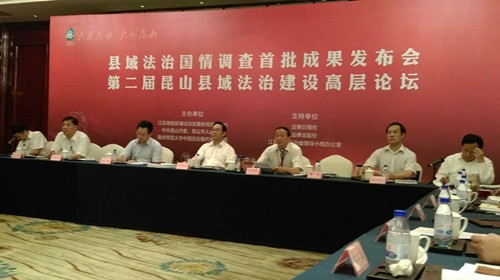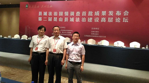 6月18日,由江苏高校区域法治发展协同创新中心、江苏省昆山市委市政府、南京师范大学中国法治现代化研究院联合主办的“县域法治国情调查首批成果发布会暨第二届昆山县域法治建设高层论坛”在江苏省昆山市举行。来自中国法学会、中央政法委、司法部、西南政法大学、中国政法大学、华东政法大学、中国人民大学等10多所高校的法学专家、13个全国百强县以及首批中国县域法治国情调查10个县市的领导出席了论坛。我校校长付子堂教授,365betribo88执行主任周祖成教授和张善根副教授应邀出席了会议。
