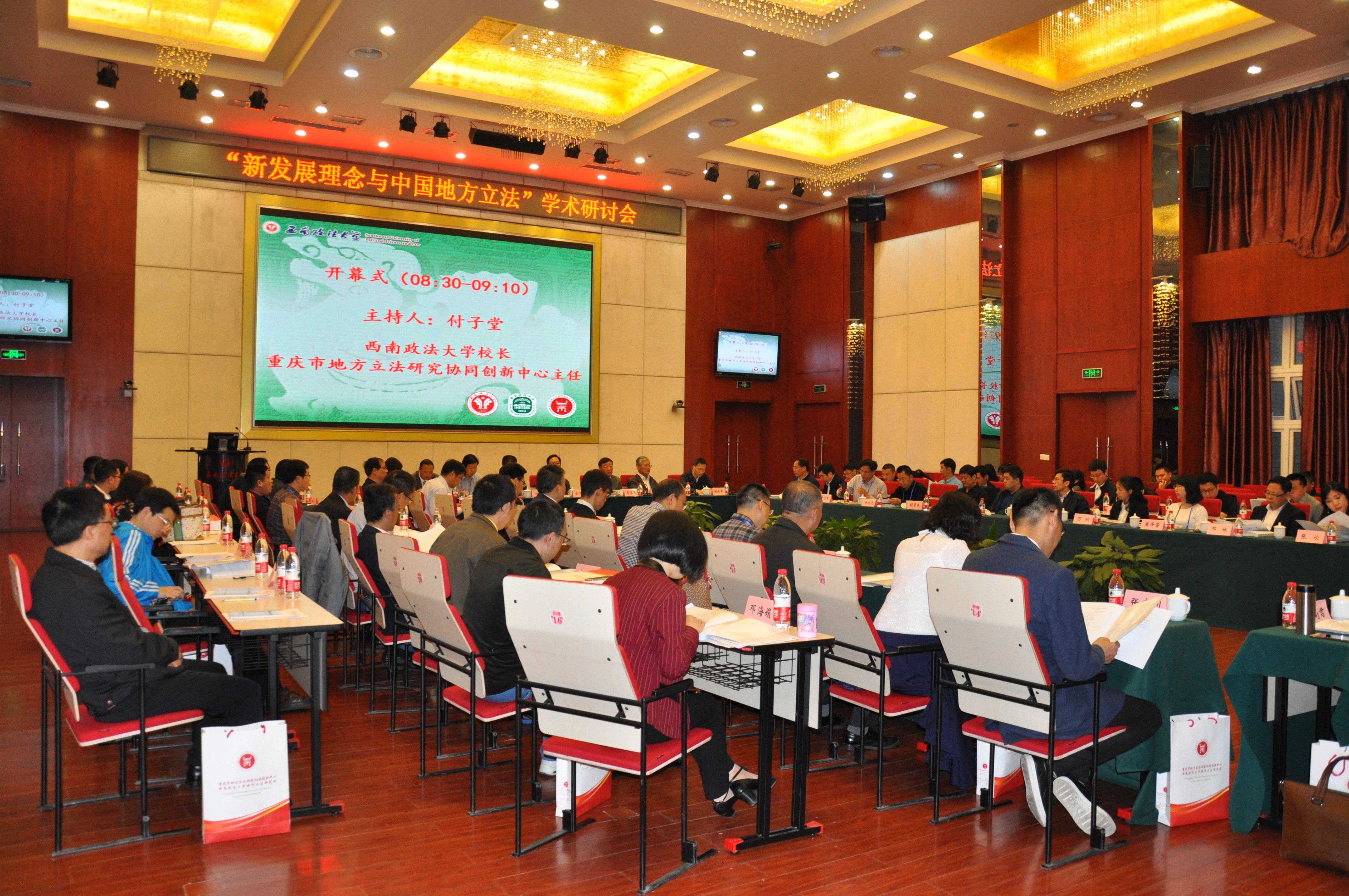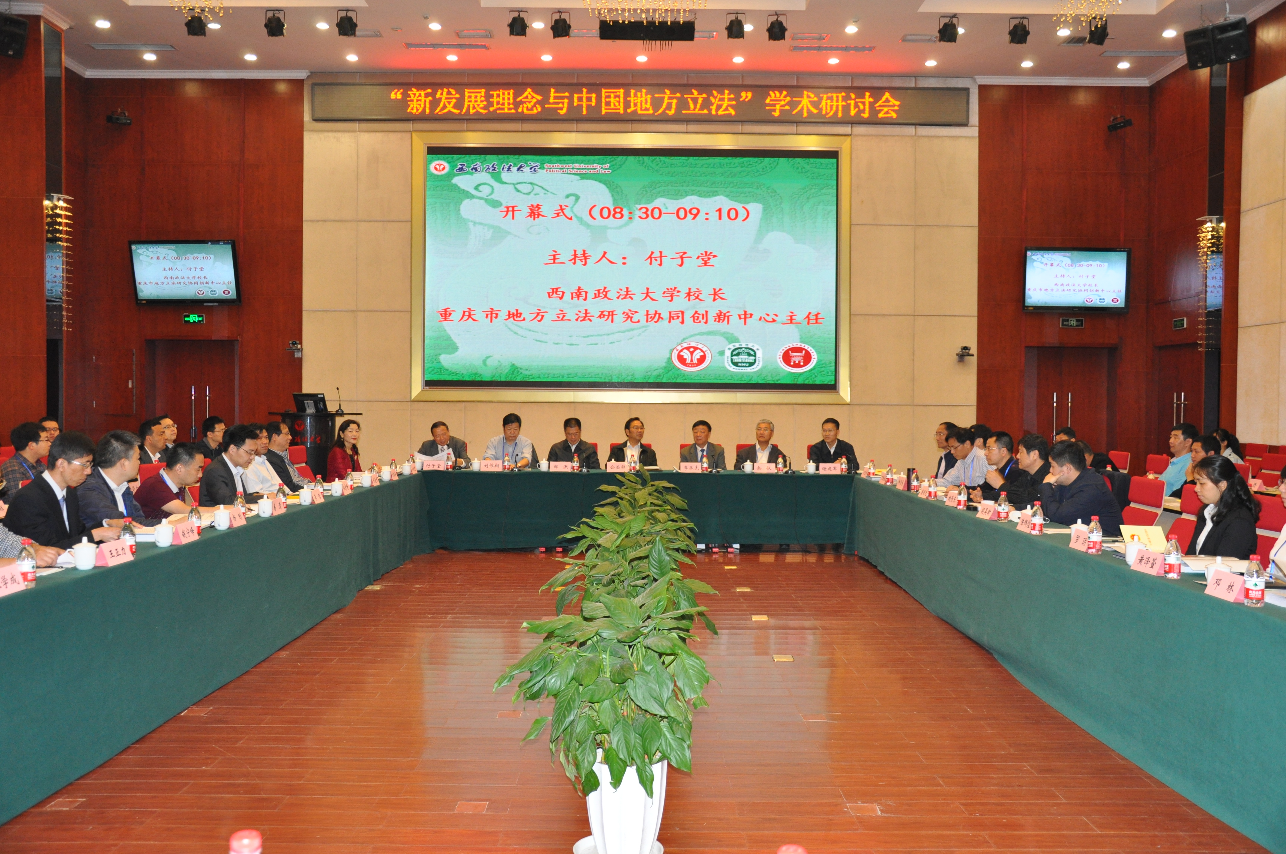 4月22日,由我校365betribo88和南京师范大学江苏高校区域法治发展协同创新中心共同主办,中国法治现代化研究院、西南政法大学地方立法研究院、西南民族法文化研究中心和法学理论学科共同承办的新发展理念与中国地方立法学术研讨会在学校毓才楼学术报告厅举行。来自江苏省人大常委会、重庆市人大常委会、河南省人大常委会、江西省人大常委会、巴中市人大常委会、广安市人大常委会、潍坊市人大常委会、深圳市政府法制办、克拉玛依市政府法制办、江苏省社会科学院、山东省社会科学院、中山大学、上海师范大学、对外经济贸易大学、西北政法大学、新疆师范大学、大连理工大学、三峡大学、甘肃政法学院等30多家单位的专家学者70余人参加会议。江苏省人大常委会副主任公丕祥、河南省人大法制委员会主任委员李承先、江苏省人大常委会法工委主任王腊生、广安市人大常委会主任余仪、重庆市政府法制办副厅局级高级法律专家谢建军、全国人大常委会委员王明雯等领导出席并讲话。校长付子堂教授主持会议并致辞。