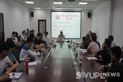 5月1日晚,中国社会科院荣誉学部委员李步云教授、西南政法大学文正邦教授作客中国立法与法治论坛,分别主讲“治学八字经”和“关于区域法治研究的几个问题”。中心执行主任周祖成教授、研究员郭忠教授、张善根副教授、杜苏老师以及部分本科生、硕士、博士研究生40余人到场聆听。讲座由周祖成教授主持。
