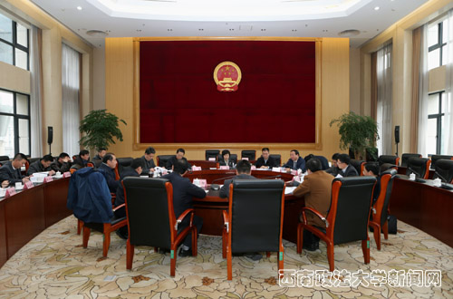 市委法治办、市法制办等单位领导,我校副校长岳彩申、行政法学院院长谭宗泽、科研处副处长孙宝刚及有关专家参加了会议。