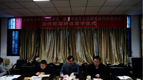 2016年1月22日,中心执行主任周祖成教授、副主任周尚君教授、张善根副教授等一行4人赴重庆邮电大学计算机科学与技术学院就协商共建地方立法中心、开展”互联网+法治”合作事项进行商谈。重庆邮电大学计算机科学与技术学院王国胤院长、蒋溢副院长、李伟生副院长等出席了本次合作磋商会。会议由重邮计算机学院蒋溢副院长主持。